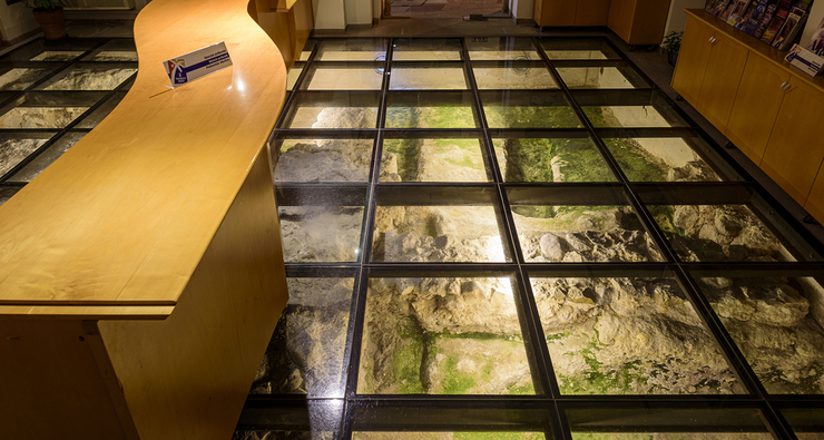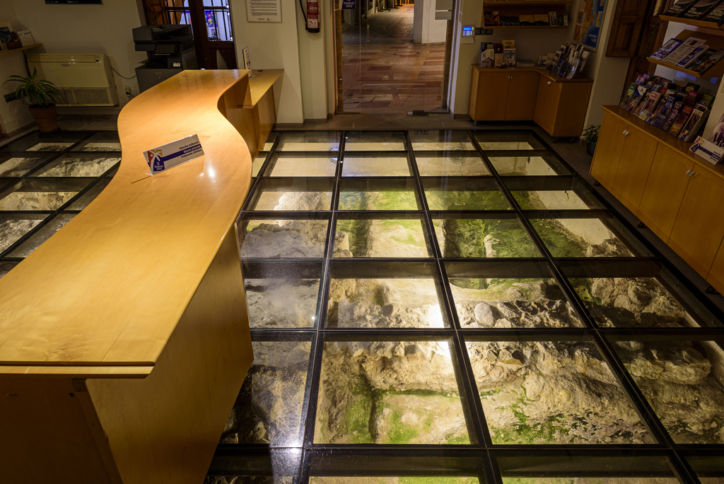 Este cementerio era un espacio trapezoidal de unos 180 m2 cerrado por un robusto muro encofrado de mortero de cal y piedras, dentro del cual se realizaban los enterramientos. Se ha conservado un sector bajo el suelo de lo que es actualmente la Oficina de Turismo, con más de una veintena de tumbas excavadas en el suelo natural con una orientación este-oeste. Los enterramientos correspondían a inhumaciones en posición decúbito supino, con la cabeza en el lado de poniente. Se ha documentado el uso de amortajamiento de cadáveres así como la presencia de cajas o ataúdes de madera. Este cementerio estuvo en uso durante el siglo XIV y gran parte del siglo XV, hasta que la ampliación de la iglesia provocó la remodelación de la plaza y la destrucción del cementerio.